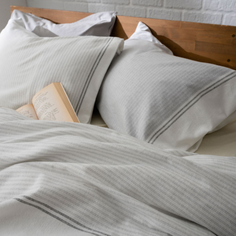 【Fab the Home】 レヴィ/ホワイト×グレイ 枕カバー 43X63cm用 先染コットンフランネル