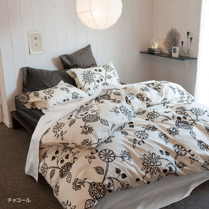 【Fab the Home】エイジア/チャコール 掛け布団カバー クイーン 染料プリント