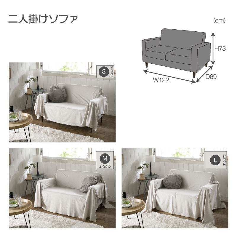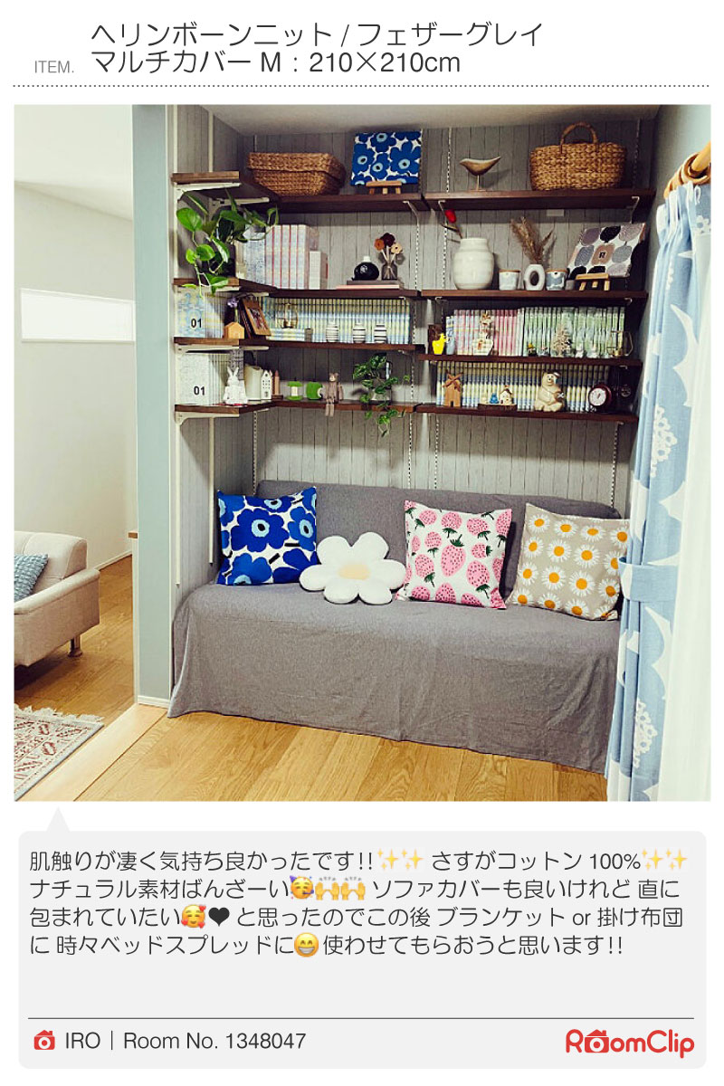 マルチカバー3サイズをシングルベッドと二人掛けソファに掛けてみました。 |